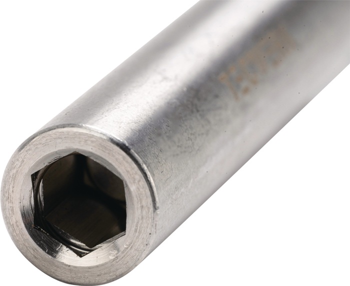 mit Edelstahlhülse, starkem Dauermagnet und Sprengring Antrieb: 6,3 mm (1/4 ″)-Sechskant, DIN 3126: ISO 1173, E 6,3 Abtrieb: 6,3 mm (1/4 ″)-Außensechskant, DIN 3126: ISO 1173, C 6,3